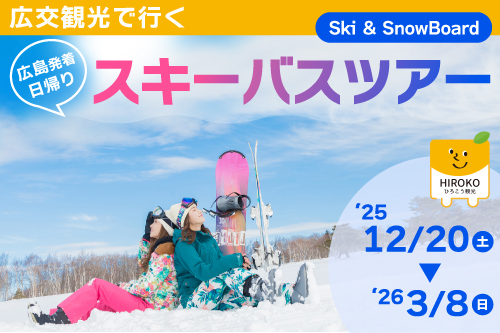 2025.12.11 広交観光 日帰りスキーバスツアー 12月20日~3月8日 スノボ&スキーを気軽に楽しむ!<めがひら・ユートピアサイオト・大佐・瑞穂ハイランド・恐羅漢スノーパーク>