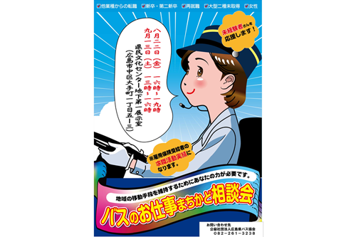 広島県バス協会主催のバスのお仕事まちかど相談会が広島県民文化センターにて開催されました。
