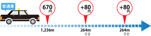| 普通車タクシー | 1分35秒まで毎に | 80円 |